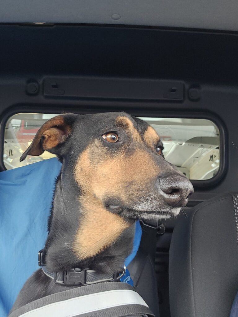 und in Burnhaupt-le-Bas möchte Dexter einen Fahrerwechsel und auch mal an das Steuer. Was ich natürlich nicht erlauben kann, da er ja erst drei Jahre alt ist und noch keinen Führerschein besitzt.