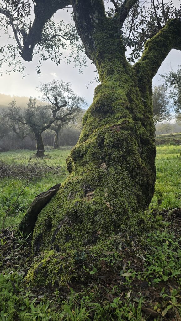 Eine Regenfront, die schon ein paar Tage anhält beeinträchtigt unsere Spaziergänge und es ist noch ungewöhnlich kühl. Trotz allen lässt sich der nahende Frühling nicht mehr verbergen. Die Olivenbäume werden geschnitten und die Korkeichen für die nächste Korkernte vorbereitet.